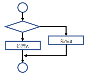 流れ図では、ひし形の中に分岐の条件を書き、矢印を分岐させます。