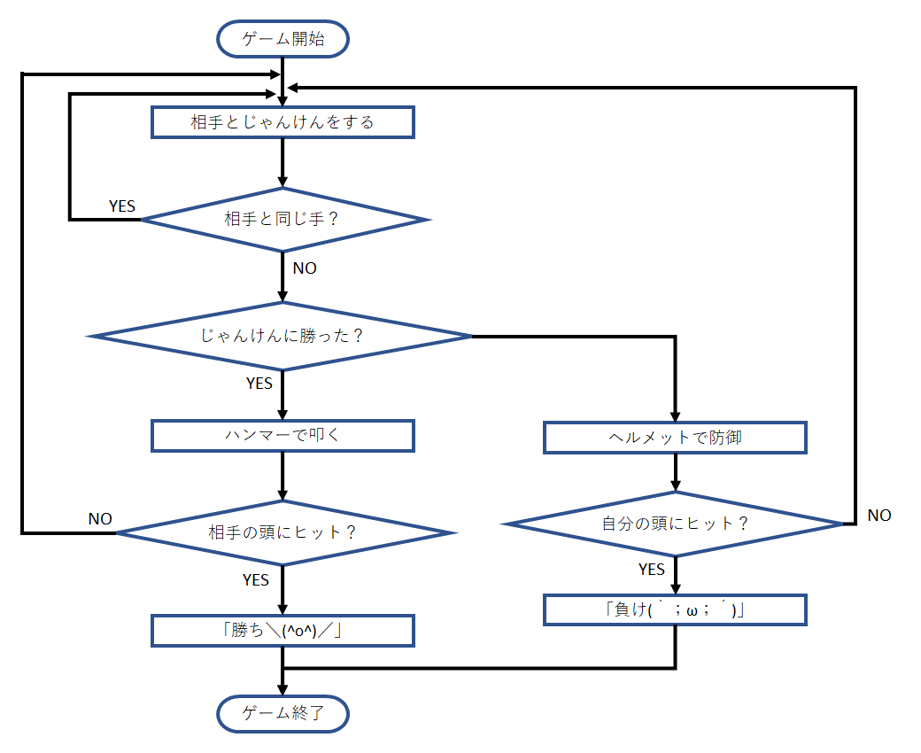二人で行うゲームを例に、流れ図を見てみましょう。