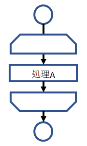 繰り返しを終える条件を、角を切り取った四角形(=ループ端)の中に描き、繰り返す処理を2つのループ端の間に描いていきます。
