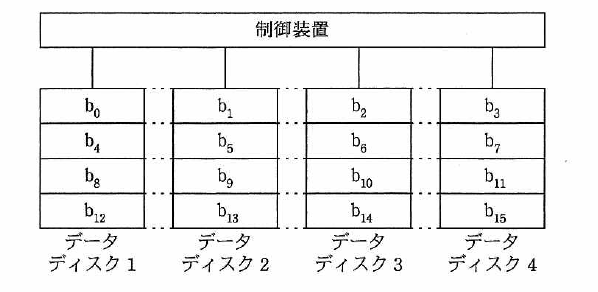 基本情報技術者 平成27年春 問11 2017.10.19 図に示すように,データを細分化して複数台の磁気ディスクに格納することを何と呼ぶか。 ここで,b0 ~ b15 はデータがビットごとにデータディスクに 格納される順番を示す。 ア: ストライピング イ: ディスクキャッシュ ウ: ブロック化 エ: ミラーリング Show answer 基本情報過去問 , システムの構成