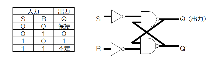 なお、RS型は同時にRとSに入力があると、結果が不定になります。