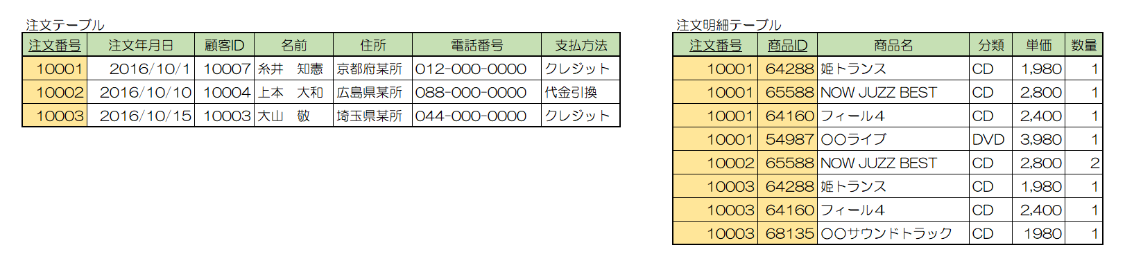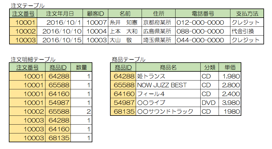 このままでは、同じ内容が繰り返し格納されてしまうので、格納効率の悪い、使いにくいデータベースになってしまいます。
