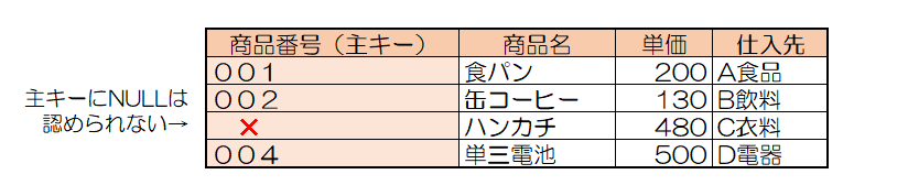 例えば、商品コードで商品を特定したい場合、商品コードを主キーにし、商品名に一意性制約をつけます。これによって、異なる商品コードであるのに同じ商品名の商品が存在する、といった事態を避けることができます。