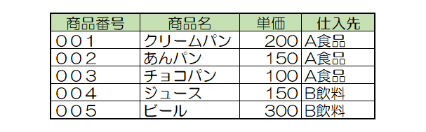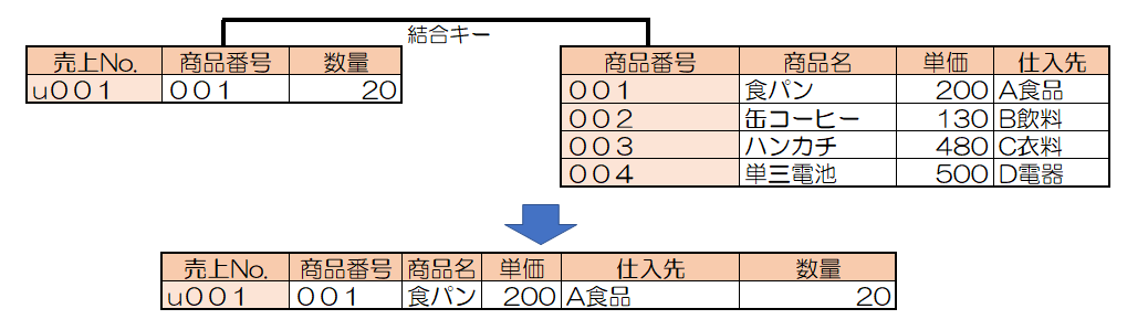 上の例の場合、それぞれの「商品番号」が結合キーとなっています。