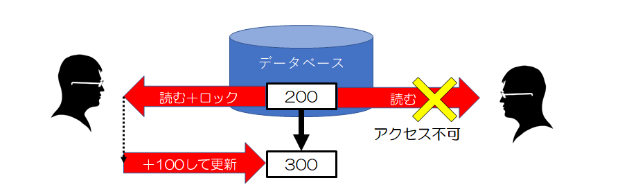 占有ロックとは、一つのファイルへのアクセスを一つのトランザクションだけに専有させて、他のトランザクションのアクセスを禁止することです。つまり、データの更新に対しても、参照に対してもロックを掛けます。先に占有ロックがかかっていた場合、後から占有ロックを掛けることができません。