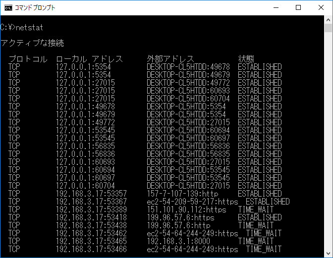 TCP/IPの通信状況を表示します。接続しているコンピュータの一覧やルーティングテーブルなどを表示することが出来ます。
