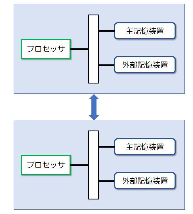 疎結合マルチプロセッサや密結合マルチプロセッサはプロセッサ同士が対称的な構成ですが、クラスタは対称性は問われません。