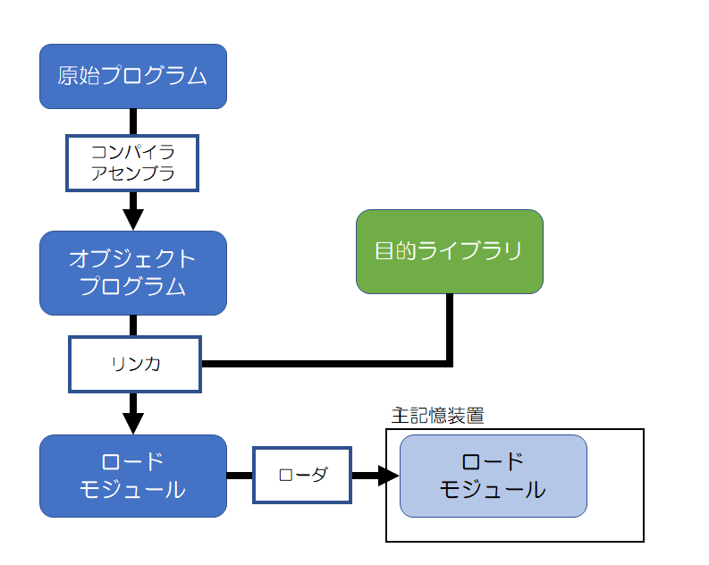 ローダは、補助記憶装置上のロードモジュールを主記憶装置上へ読み込むソフトウェアです。